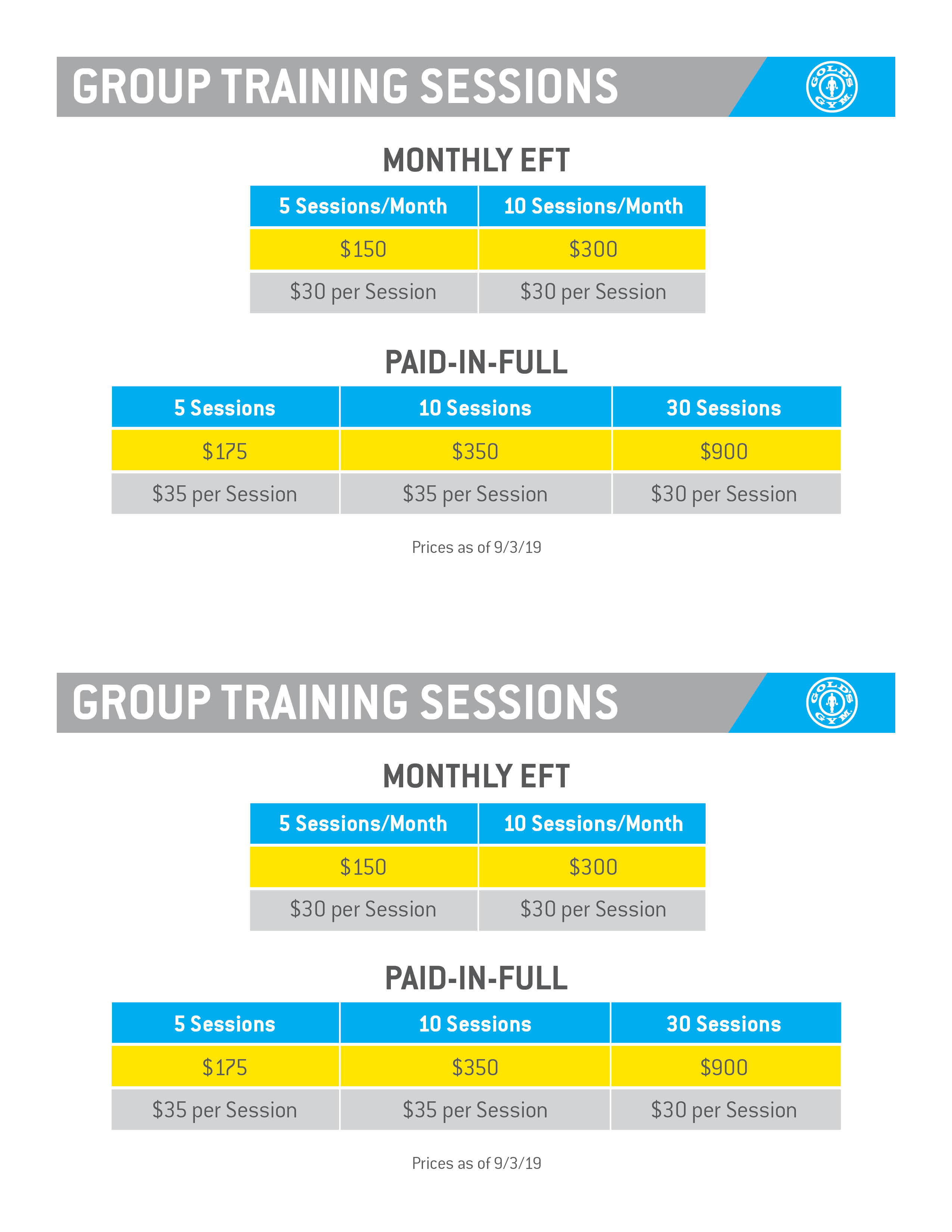 Post: Group Training Price Sheet